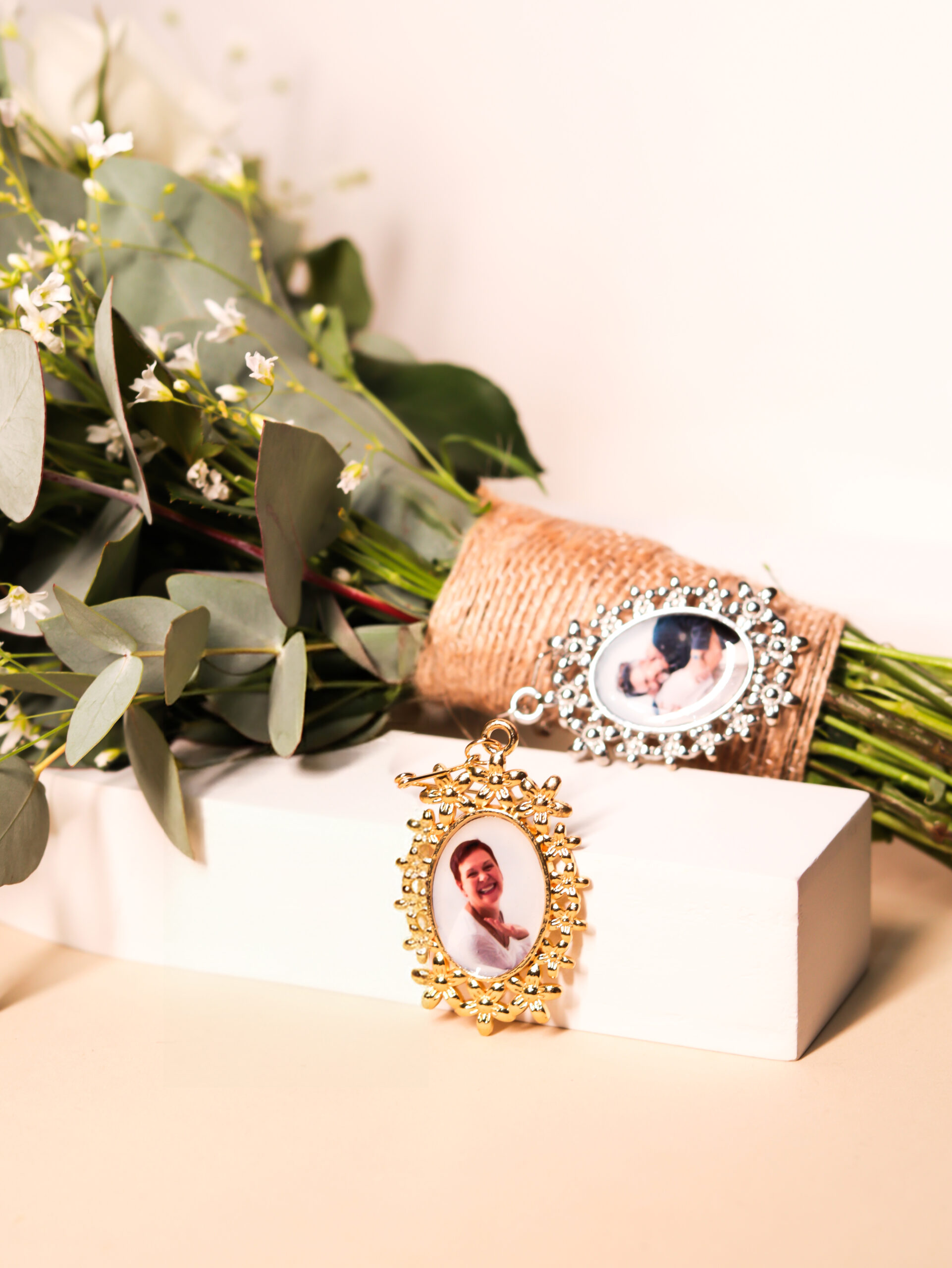 Não fazemos nenhum tratamento nas fotos, retirada de fundo ou algum objeto ou pessoa. Usamos sempre a foto original e apenas fazem a aproximação do rosto no tamanho do relicário.