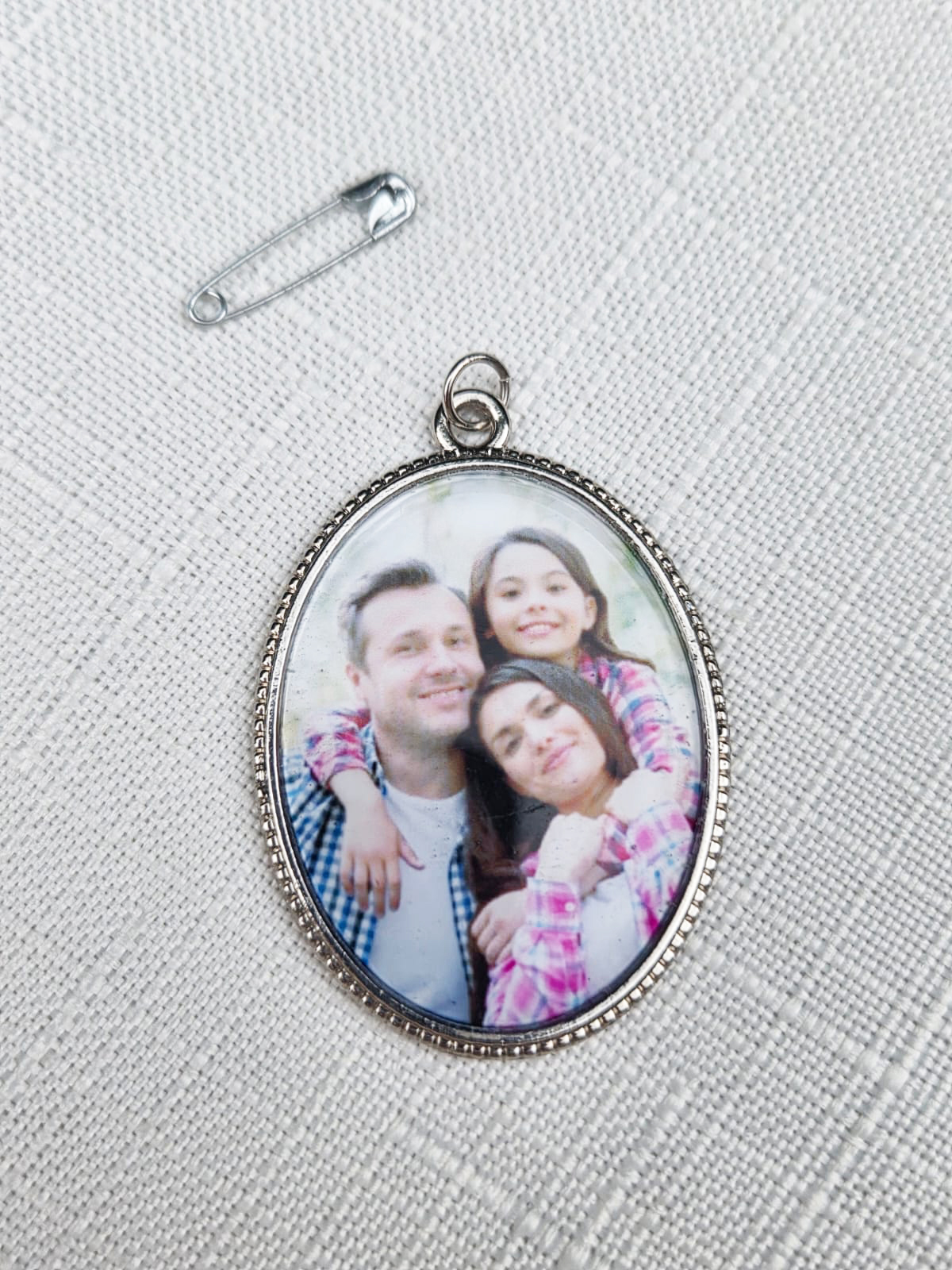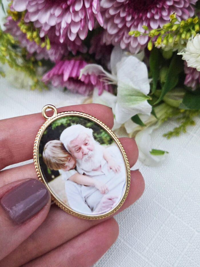Não fazemos nenhum tratamento nas fotos, retirada de fundo ou algum objeto ou pessoa. Usamos sempre a foto original e apenas fazem a aproximação do rosto no tamanho do relicário.